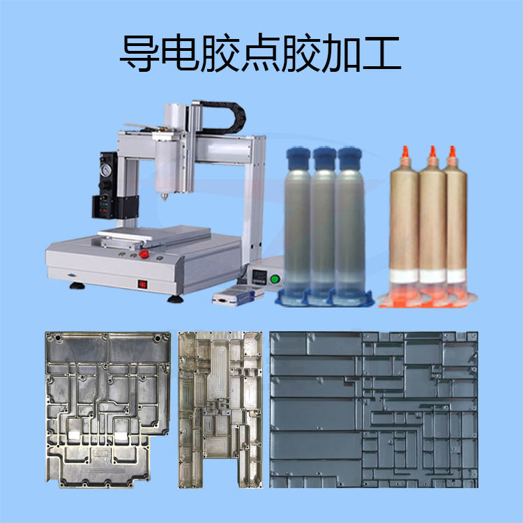 導電膠點膠加工所用導電膠粘劑用于微電子產品的裝配,包括細導線以及印刷線路、電鍍底板、陶瓷被粘物上的金屬層、金屬底盤連接,粘接產品的導線與管座,粘接電子產品的元件與穿過印刷線路的平面孔,粘接波導調諧以及孔修補。
